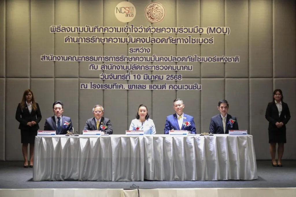 วันจันทร์ที่ 10 มีนาคม 2568 สำนักงานคณะกรรมการรักษาความมั่นคงปลอดภัยไซเบอร์แห่งชาติ (สกมช.) โดย พลอากาศตรี อมร ชมเชย ลธ.กมช. และ สำนักงานปลัดกระทรวงคมนาคม (สปค.) โดย นายวิทยา ยาม่วง รองปลัดกระทรวงคมนาคม ได้ร่วมลงนาม บันทึกความเข้าใจ (MOU) เพื่อยกระดับมาตรการรักษาความปลอดภัยไซเบอร์ของภาคการขนส่งและโลจิสติกส์ ซึ่งถือเป็นโครงสร้างพื้นฐานสำคัญของประเทศ โดยมี ดร.ณหทัย ทิวไผ่งาม ผู้ช่วยรัฐมนตรีประจำสำนักนายกรัฐมนตรี เป็นประธานในพิธี และกล่าวเปิดงานประชาสัมพันธ์ความก้าวหน้าของโครงการสนับสนุนการจัดตั้ง Sectoral CERT ด้านขนส่งและโลจิสติกส์ พร้อมเน้นย้ำถึงความสำคัญของการป้องกันภัยคุกคามไซเบอร์ที่อาจส่งผลกระทบต่อโครงสร้างพื้นฐานด้านคมนาคม
