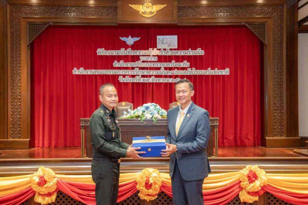 เมื่อวันที่ 25 สิงหาคม 2568 สำนักงานคณะกรรมการการรักษาความมั่นคงปลอดภัยไซเบอร์แห่งชาติ โดย พลอากาศตรี อมร ชมเชย เลขาธิการคณะกรรมการการรักษาความมั่นคงปลอดภัยไซเบอร์แห่งชาติ และ สำนักงานปลัดกระทรวงกลาโหม โดย พลเอก สนิธชนก สังขจันทร์ ปลัดกระทรวงกลาโหม ร่วมลงนามในบันทึกความเข้าใจว่าด้วยความร่วมมือด้านการรักษาความมั่นคงปลอดภัยไซเบอร์ ณ ห้องสุรศักดิ์มนตรี สำนักงานปลัดกระทรวงกลาโหม