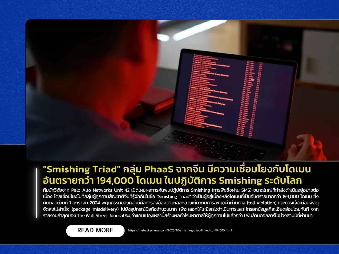 แหล่งข่าว https://thehackernews.com/2025/10/smishing-triad-linked-to-194000.html