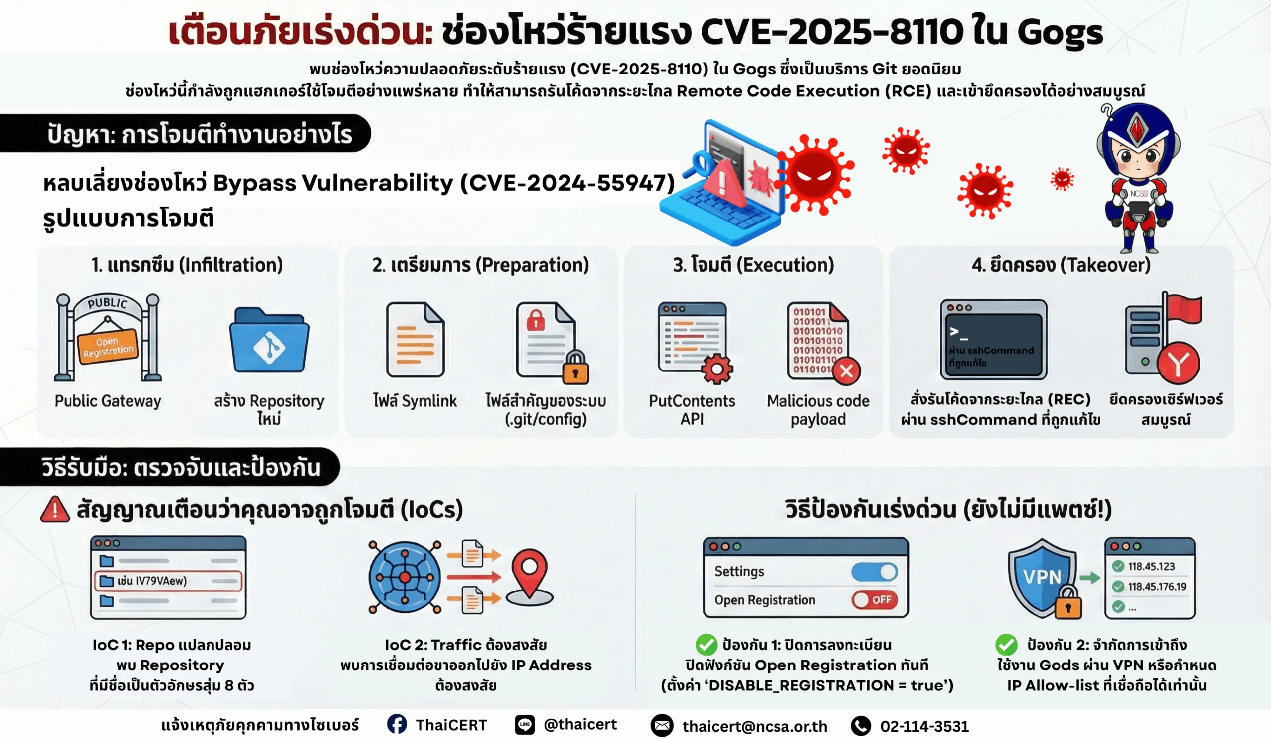 🔴 เตือนภัยเร่งด่วน! พบช่องโหว่ ร้ายแรง (CVE-2025-8110) ใน Gogs แฮกเกอร์กำลังโจมตีหนัก เสี่ยงถูกยึดเซิร์ฟเวอร์ทันที