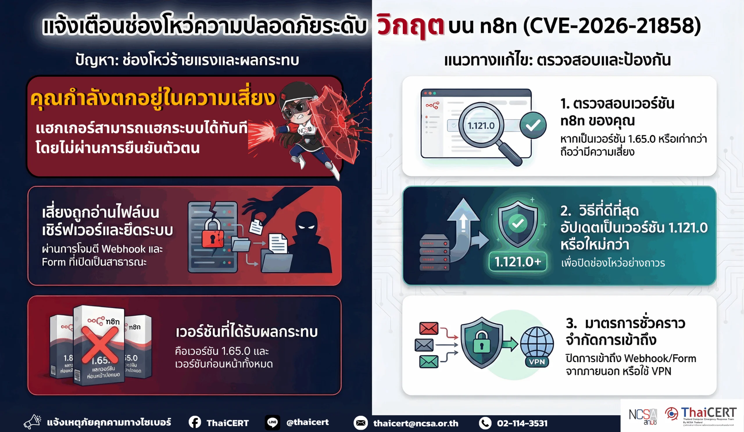 ⚠️ ThaiCERT ได้ติดตามสถานการณ์ภัยคุกคามทางไซเบอร์ และพบข้อมูลการเปิดเผยช่องโหว่ระดับวิกฤติในแพลตฟอร์ม n8n