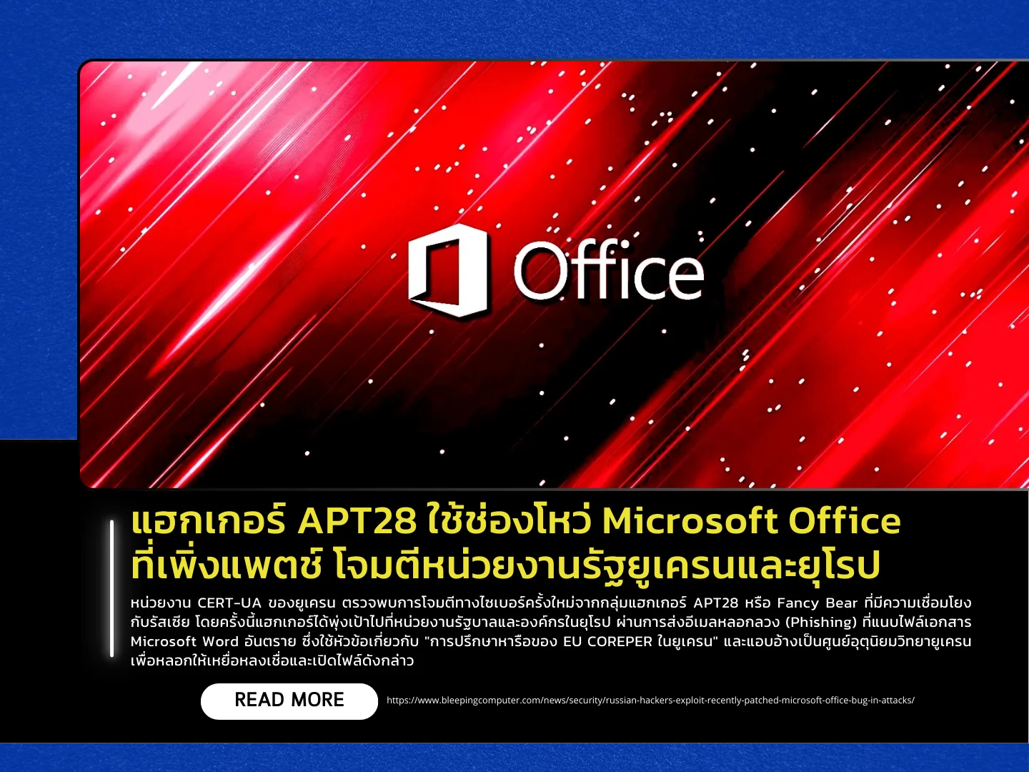 หน่วยงาน CERT-UA ของยูเครน ตรวจพบการโจมตีทางไซเบอร์ครั้งใหม่จากกลุ่มแฮกเกอร์ APT28 หรือ Fancy Bear ที่มีความเชื่อมโยงกับรัสเซีย โดยครั้งนี้แฮกเกอร์ได้พุ่งเป้าไปที่หน่วยงานรัฐบาลและองค์กรในยุโรป ผ่านการส่งอีเมลหลอกลวง (Phishing) ที่แนบไฟล์เอกสาร Microsoft Word อันตราย ซึ่งใช้หัวข้อเกี่ยวกับ “การปรึกษาหารือของ EU COREPER ในยูเครน” และแอบอ้างเป็นศูนย์อุตุนิยมวิทยายูเครน เพื่อหลอกให้เหยื่อหลงเชื่อและเปิดไฟล์ดังกล่าว