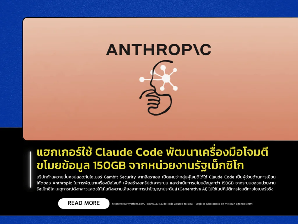 แหล่งข่าว https://securityaffairs.com/188696/ai/claude-code-abused-to-steal-150gb-in-cyberattack-on-mexican-agencies.html