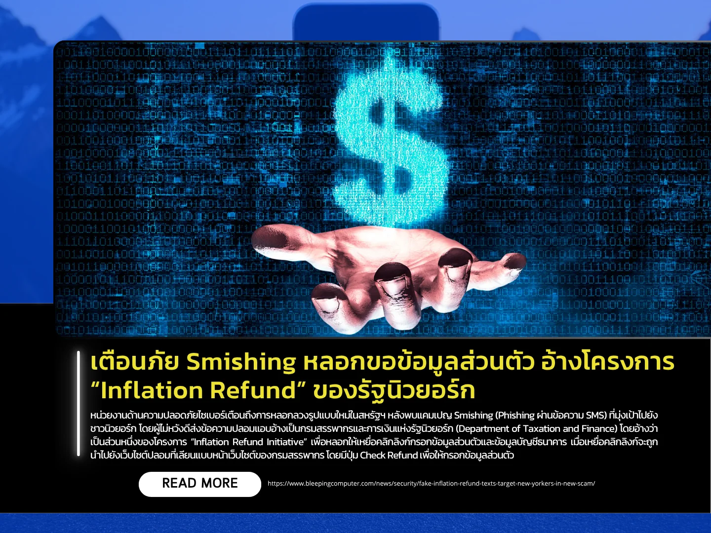 Cybersecurity authorities have issued a warning about a new scam in the United States after detecting a Smishing campaign (phishing via SMS) targeting New Yorkers. Threat actors are sending fraudulent text messages impersonating the New York State Department of Taxation and Finance, claiming to be part of an “Inflation Refund Initiative” in order to trick victims into clicking a link and providing personal and banking information.