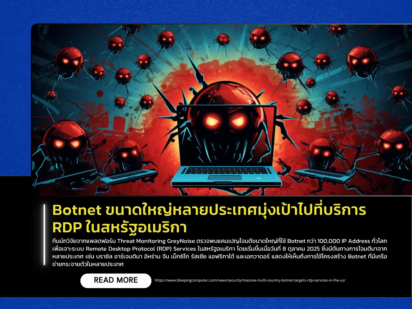 Researchers from the threat monitoring platform GreyNoise have detected a massive campaign leveraging over 100,000 botnet IP addresses worldwide to attack Remote Desktop Protocol (RDP) services in the United States. The campaign, which began on October 8, 2025, originates from multiple countries, including Brazil, Argentina, Iran, China, Mexico, Russia, South Africa, and Ecuador, highlighting the use of a globally distributed botnet infrastructure.