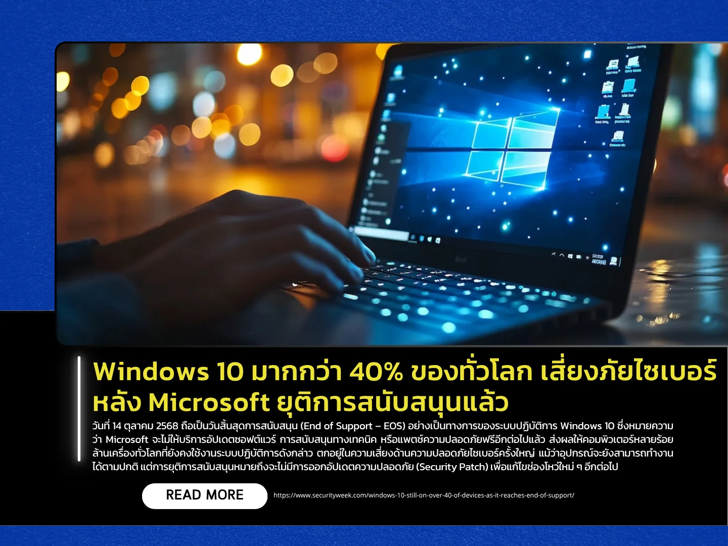 On October 14, 2025, Microsoft officially ended support (End of Support – EOS) for the Windows 10 operating system. This means that the company will no longer provide software updates, technical support, or free security patches. As a result, hundreds of millions of computers worldwide that still rely on Windows 10 now face a significant cybersecurity risk. Although the operating system will continue to function, the lack of ongoing security patches means newly discovered vulnerabilities will remain unaddressed, leaving these systems highly susceptible to malware and hacker attacks.