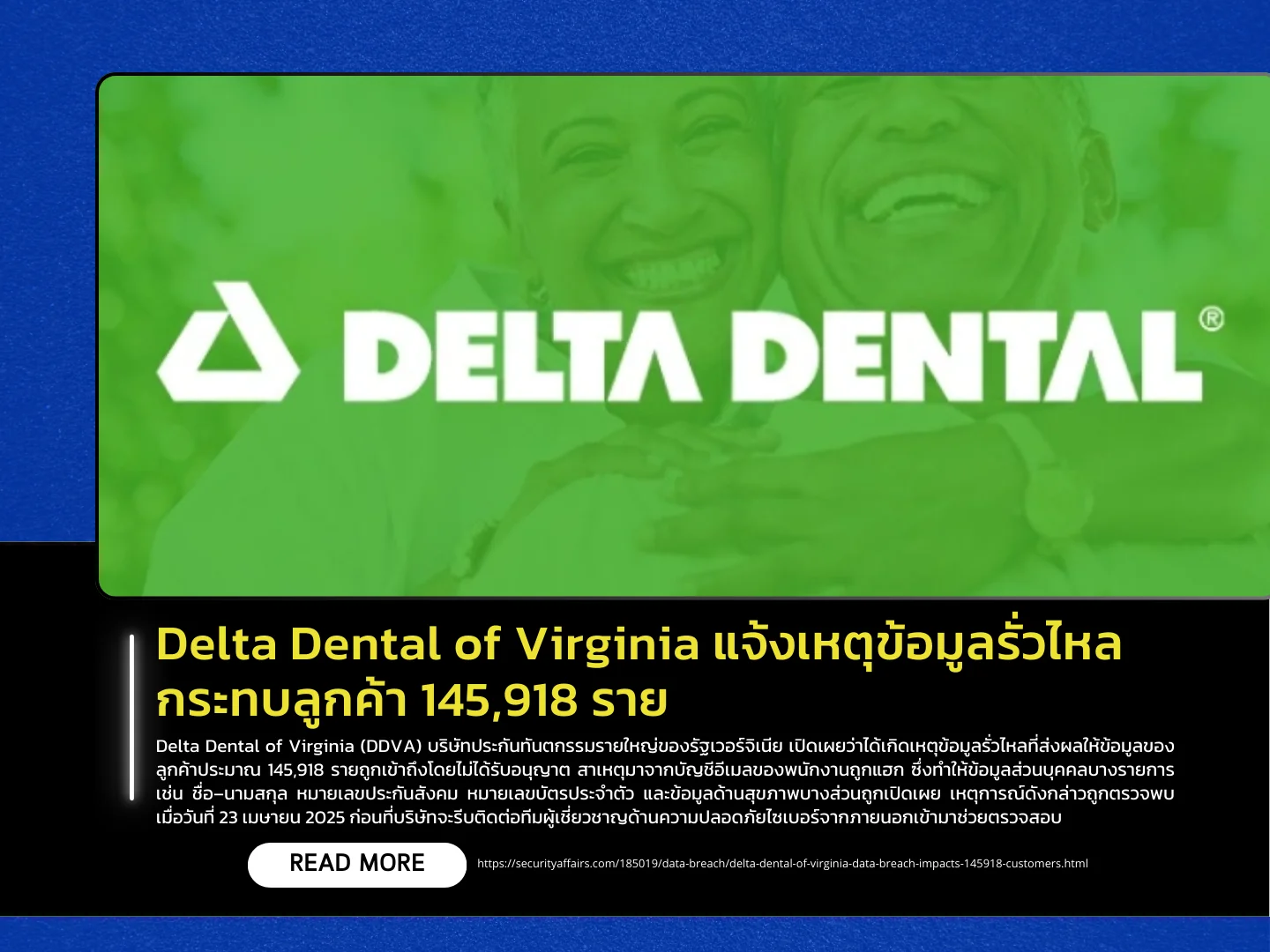 Delta Dental of Virginia (DDVA), a major dental insurance provider in the state of Virginia, has disclosed a data breach that resulted in unauthorized access to the personal information of approximately 145,918 customers. The incident stemmed from a compromised employee email account, which allowed attackers to access certain personal data, including names, Social Security numbers, identification numbers, and some health-related information.