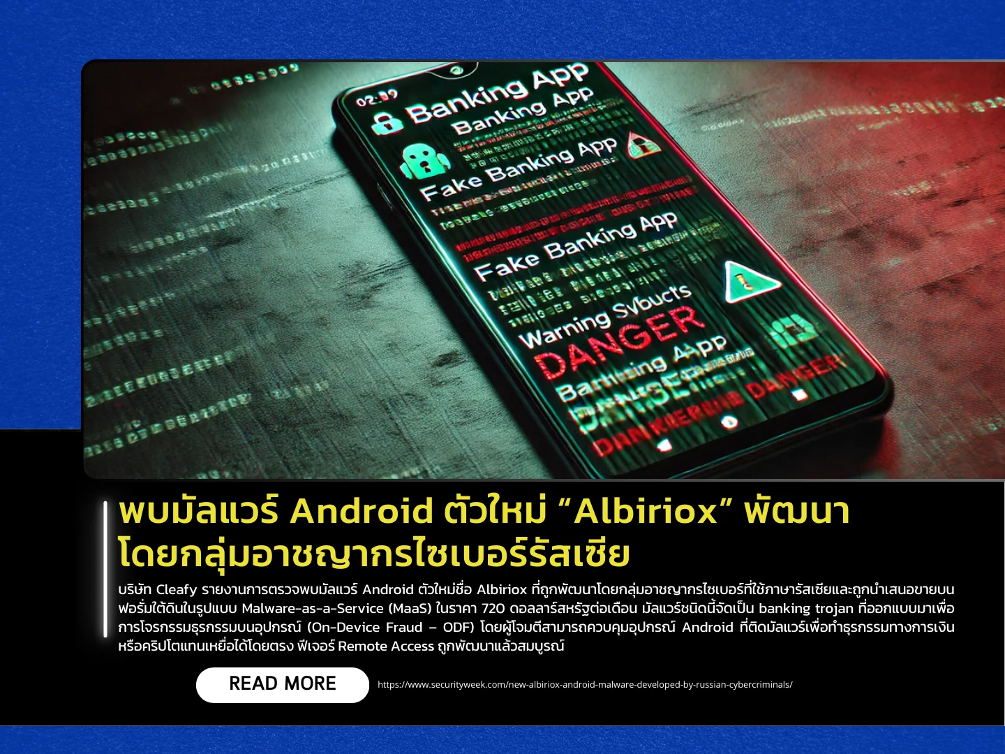 Cybersecurity firm Cleafy has reported the discovery of a new Android malware called Albiriox, developed by a Russian-speaking cybercriminal group and advertised on underground forums as a Malware-as-a-Service (MaaS) for $720 per month. The malware is classified as a banking trojan designed specifically for on-device fraud (ODF), enabling attackers to remotely control an infected Android device and perform financial or crypto transactions on behalf of the victim. While its remote access capabilities are already fully functional, its overlay attack mechanism-which uses phishing screens over legitimate apps-is still under development.
