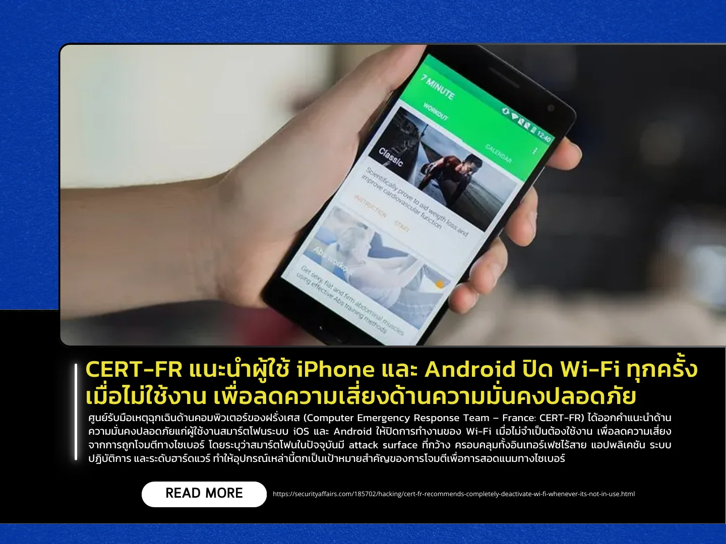 France’s Computer Emergency Response Team (CERT-FR) has issued cybersecurity guidance advising iOS and Android smartphone users to turn off Wi-Fi when it is not needed in order to reduce the risk of cyberattacks. CERT-FR notes that modern smartphones have a broad attack surface, spanning wireless interfaces, applications, operating systems, and even hardware layers. As a result, these devices are prime targets for cyber-espionage due to their widespread use and the large volumes of personal data they store.