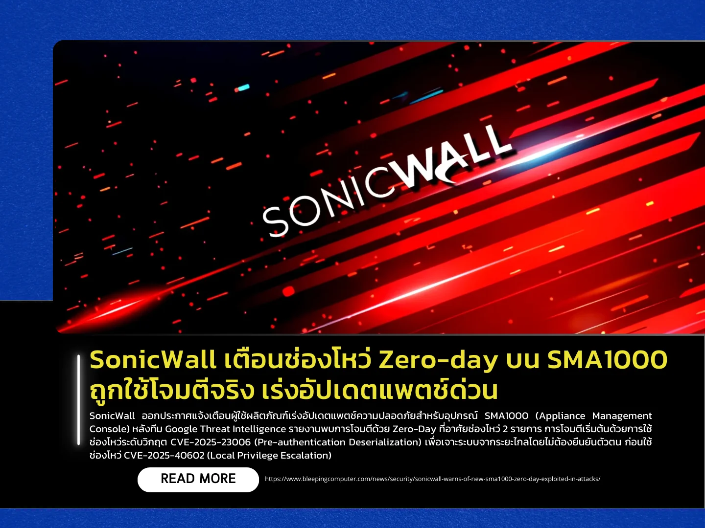 SonicWall has issued a security advisory urging customers to immediately apply security patches for SMA1000 (Appliance Management Console) devices after Google Threat Intelligence reported active zero-day exploitation involving two vulnerabilities. The attack chain begins with a critical pre-authentication deserialization vulnerability, CVE-2025-23006, which allows remote compromise without authentication, followed by CVE-2025-40602, a local privilege escalation flaw that enables attackers to gain the highest system privileges. When exploited together, these vulnerabilities allow attackers to execute operating system commands and fully take control of affected devices.