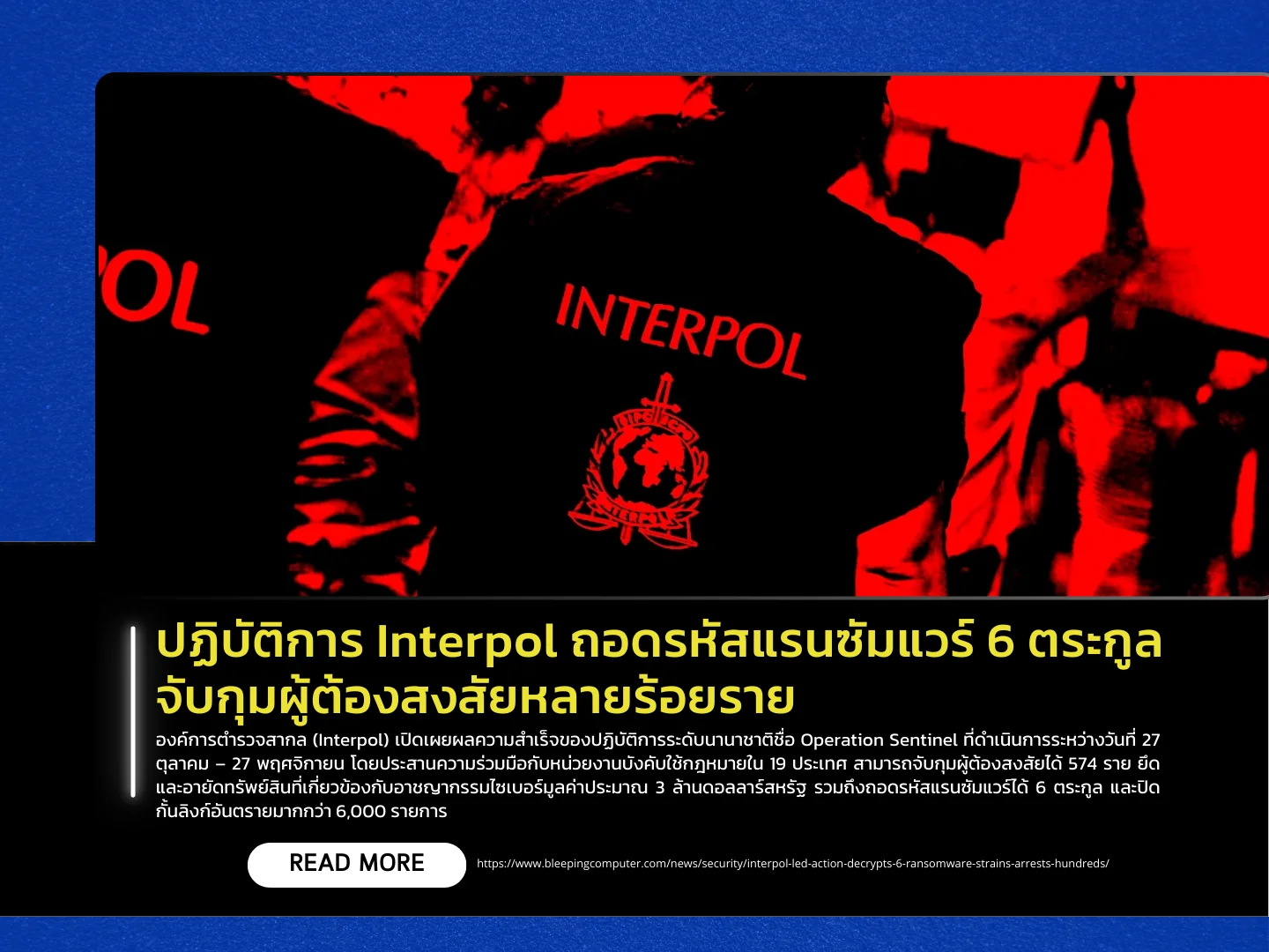 The International Criminal Police Organization (Interpol) has announced the successful outcome of a large-scale international operation known as Operation Sentinel, conducted between 27 October and 27 November in cooperation with law enforcement agencies from 19 countries. The operation resulted in the arrest of 574 suspects, the seizure and freezing of assets linked to cybercrime valued at approximately USD 3 million, the decryption of six ransomware families, and the takedown of more than 6,000 malicious links. Ongoing investigations connected to the operation are associated with estimated financial losses exceeding USD 21 million, stemming from Business Email Compromise (BEC) schemes, extortion, and ransomware attacks.