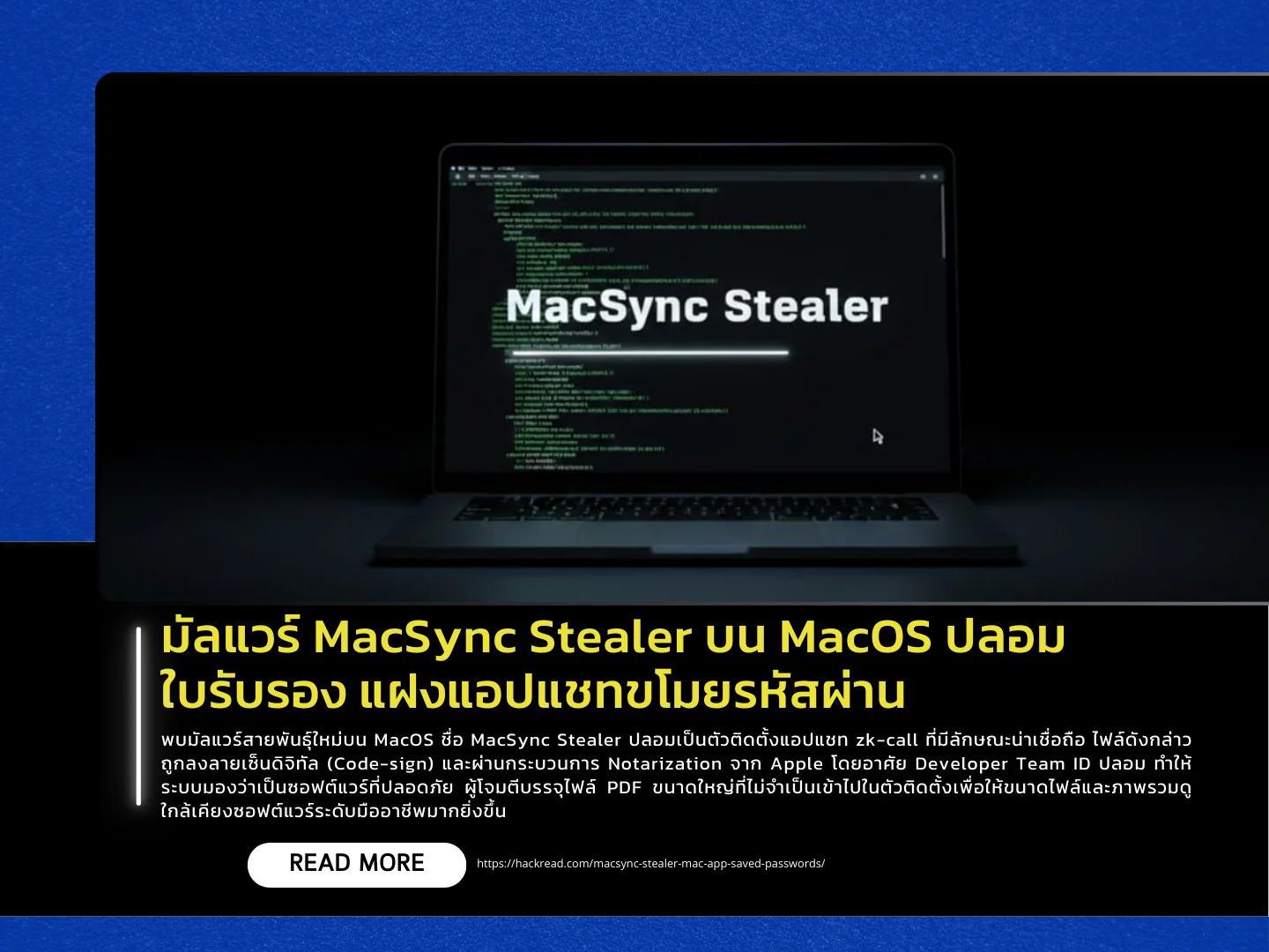 A new macOS malware strain known as MacSync Stealer has been discovered masquerading as the installer for a chat application called zk-call, designed to appear legitimate. The installer is digitally code-signed and notarized by Apple, using a fraudulent Developer Team ID, allowing the operating system to treat it as trusted software. To further enhance its credibility, the attackers bundled an unusually large and unnecessary PDF file within the installer, inflating the file size to resemble that of a professional-grade application.