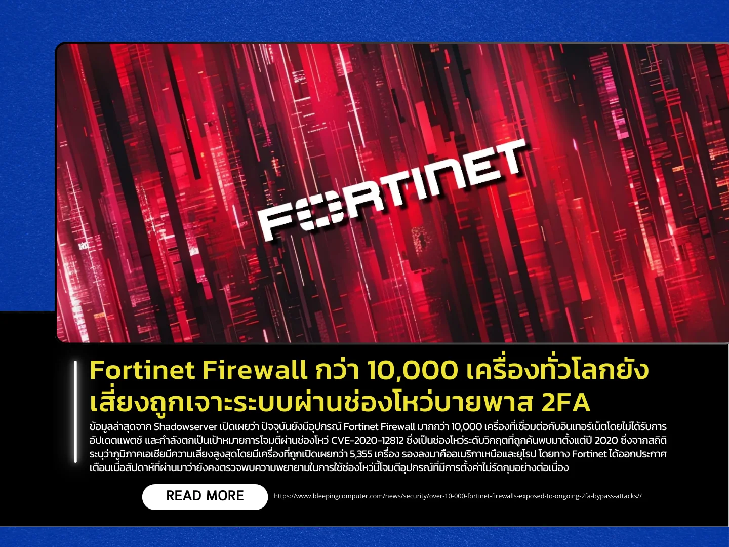 Recent data from Shadowserver reveals that more than 10,000 Fortinet firewall devices remain exposed to the internet without having applied critical security patches and are actively at risk of exploitation via CVE-2020-12812, a severe vulnerability first disclosed in 2020. Statistics indicate that Asia is the most affected region, with over 5,355 exposed devices, followed by North America and Europe. Fortinet reiterated in an advisory last week that it continues to observe ongoing exploitation attempts targeting improperly configured devices.