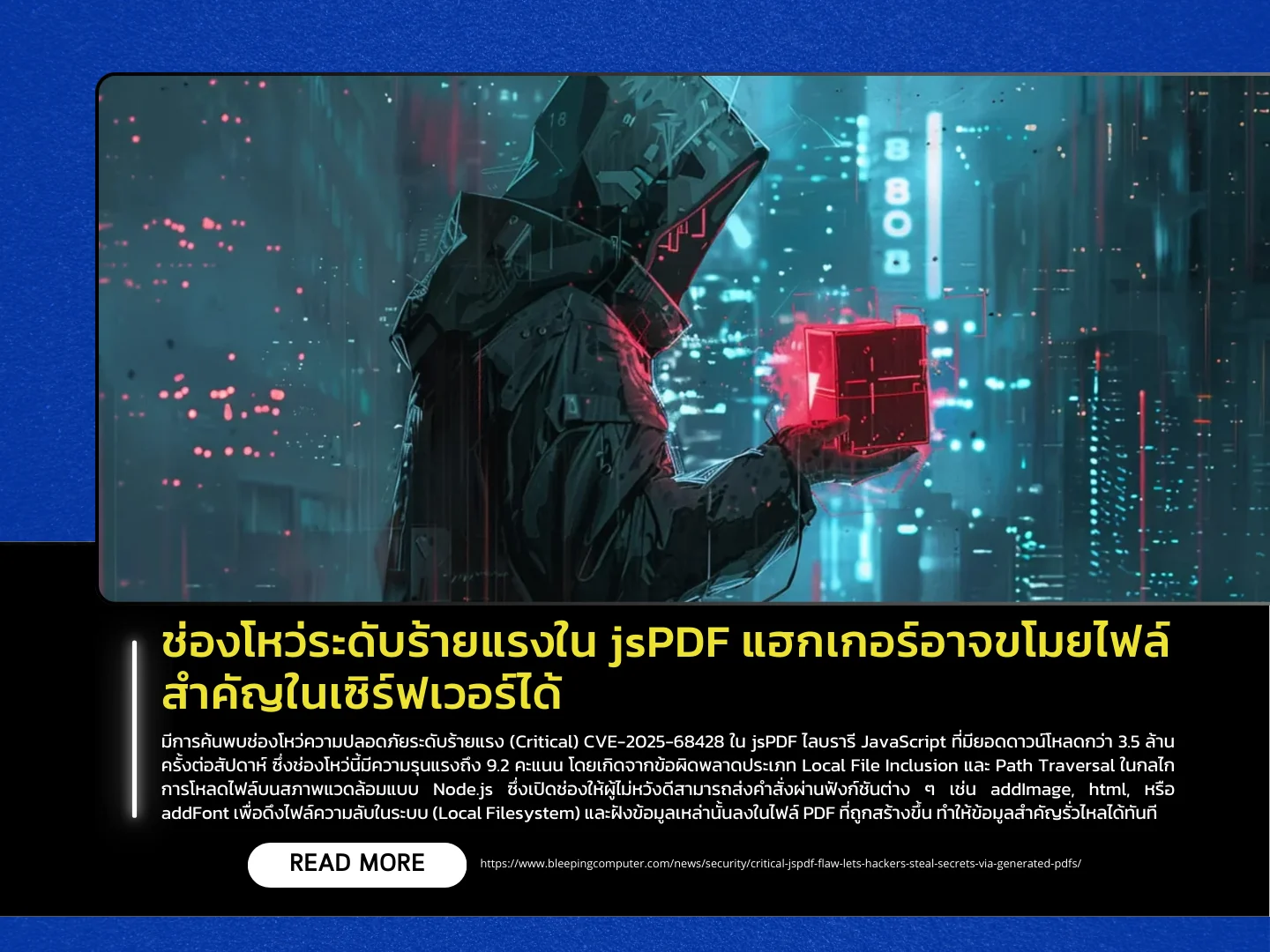 A critical security vulnerability, tracked as CVE-2025-68428, has been discovered in jsPDF, a popular JavaScript library with more than 3.5 million downloads per week. The vulnerability carries a CVSS score of 9.2 and stems from Local File Inclusion (LFI) and Path Traversal flaws in the file-loading mechanism when jsPDF is used in a Node.js environment. This weakness allows attackers to abuse functions such as addImage, html, or addFont to read sensitive files from the local filesystem and embed their contents directly into generated PDF files, leading to immediate data leakage.