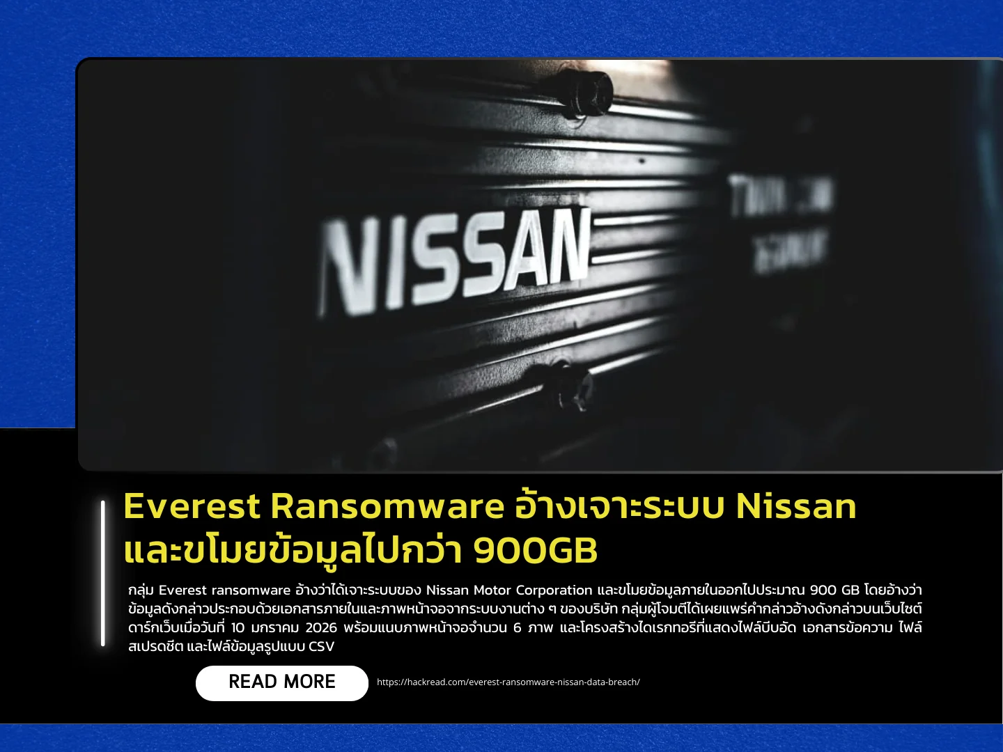 The Everest ransomware group has claimed that it breached the systems of Nissan Motor Corporation and exfiltrated approximately 900 GB of internal data. According to the attackers, the stolen data includes internal documents and screenshots from various corporate systems. The group published these claims on its dark web leak site on January 10, 2026, accompanied by six screenshots and a directory structure showing compressed archives, text documents, spreadsheets, and CSV files.