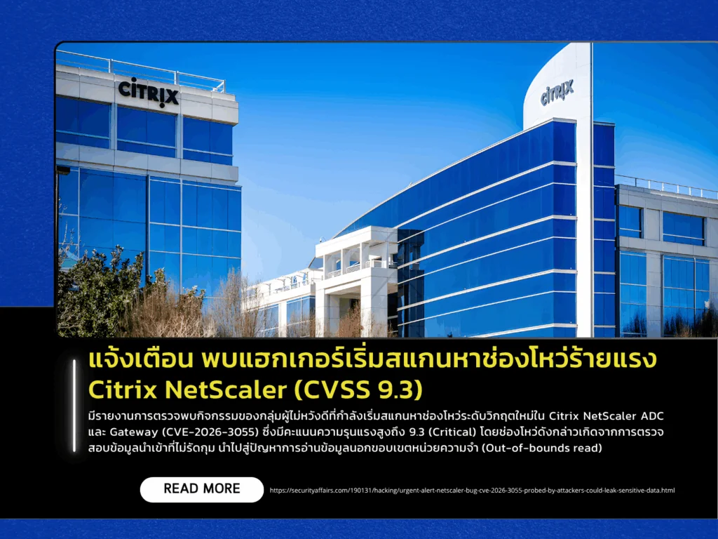 There are reports of threat actors actively scanning for a newly disclosed critical vulnerability in Citrix NetScaler ADC and Citrix NetScaler Gateway (CVE-2026-3055), which carries a high severity score of 9.3 (Critical). The vulnerability stems from insufficient input validation, leading to an out-of-bounds read issue. This flaw allows unauthenticated remote attackers to access and extract sensitive data residing in the device’s memory.
